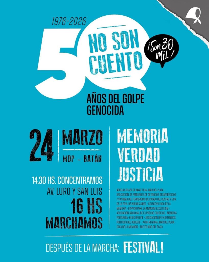 A 50 años del golpe genocida, seguimos levantando las banderas de Memoria, Verdad y Justicia.