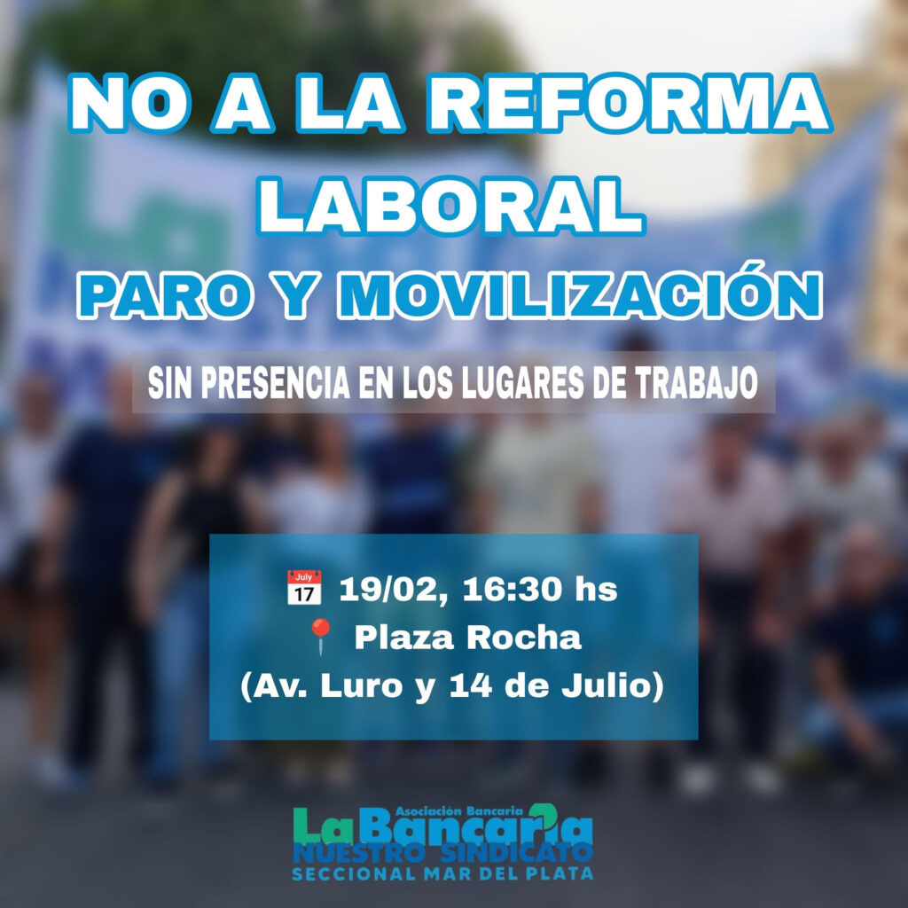 Convocamos a todas las trabajadoras y los trabajadores bancarios a sumarse activamente a esta medida de fuerza, en defensa del salario, la estabilidad laboral y la dignidad del trabajo.